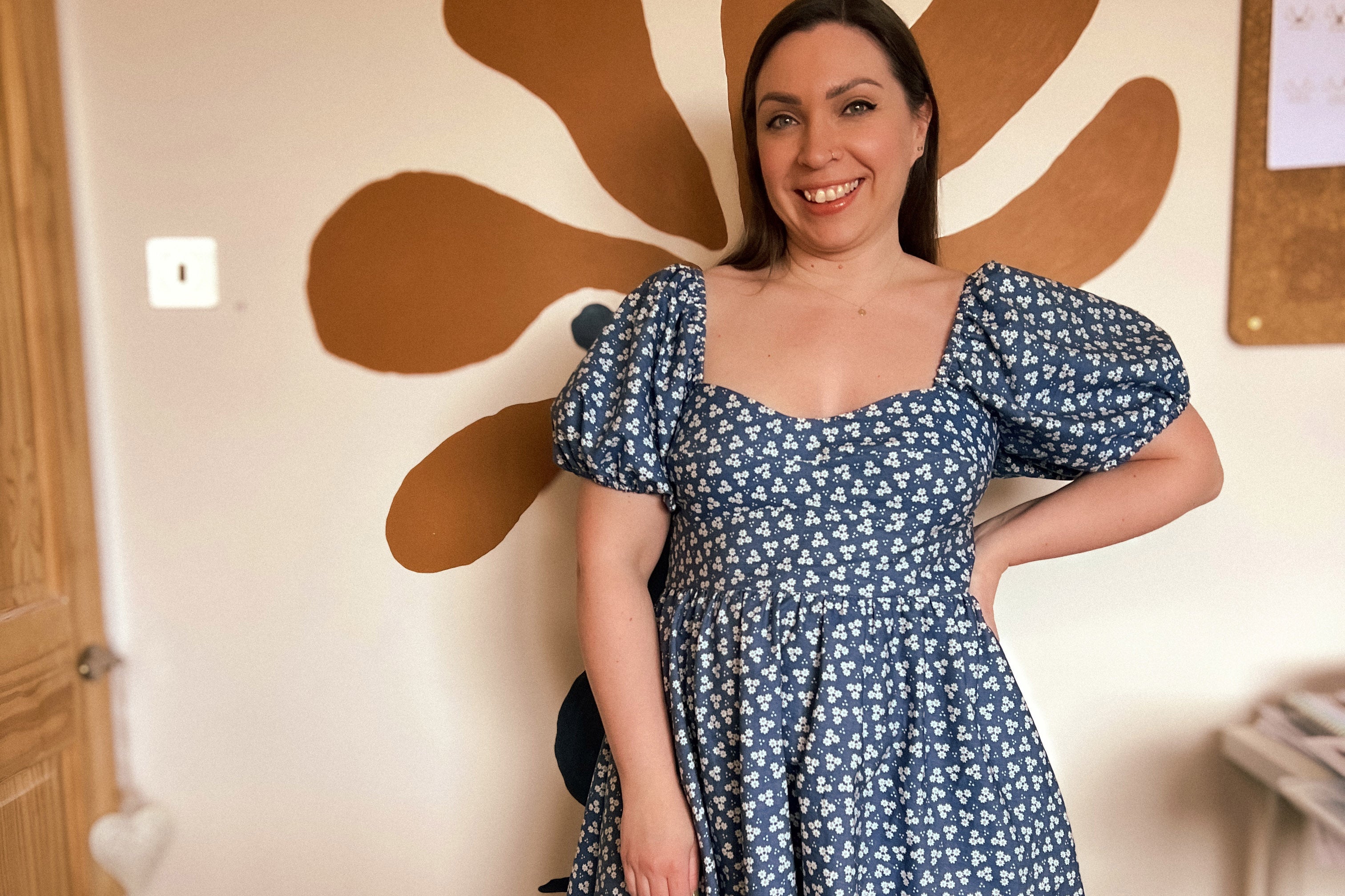 I studied Art & Design at college and touched a sewing machine for the first time. I didn't love it and ended up using a hot glue gun to assemble my first dress. Trust me when I say I know how being a beginner sewist feels! (yes I'm wearing blue eyeshadow in the photo)