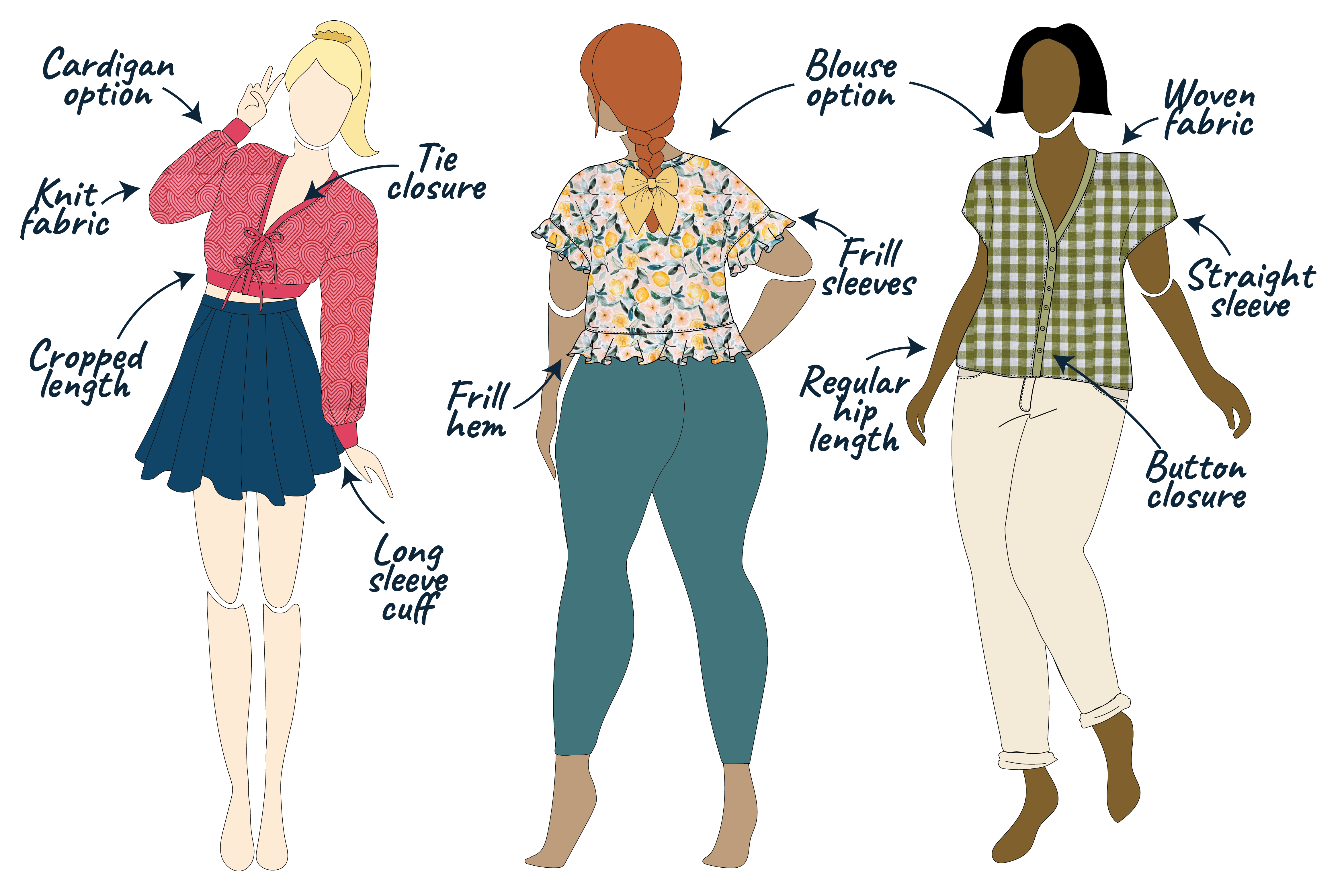 Ohhh you’re going to have so much fun with Fearne. This size-inclusive sewing pattern lets you mix and match everything… neckline, sleeves, hem length, hem style… and you can sew her in woven or knit fabric. She's basically like pick ’n’ mix of sewing patterns. Want a woven bodice with knitted cuffs and a knit waistband? Go for it.