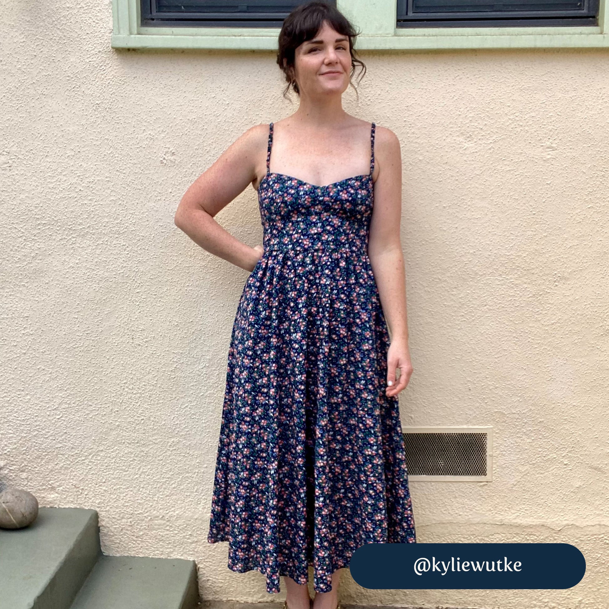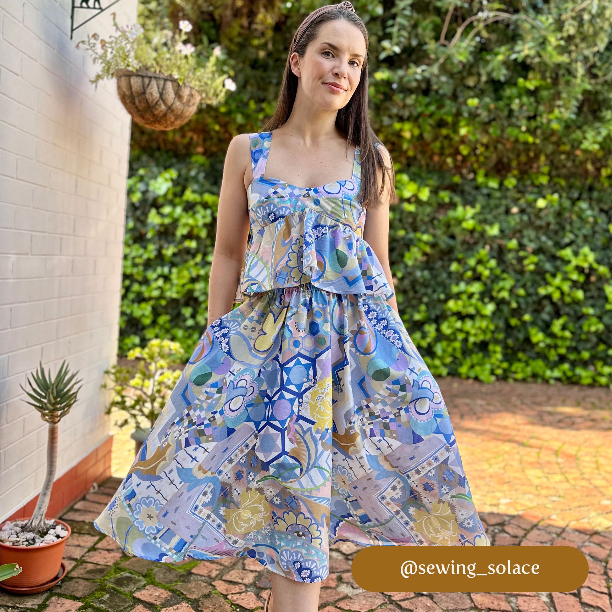 The bodice is fully lined, and all seams are finished with French seams, giving you a beautifully clean interior - no overlocker needed! The midi-length skirt and dress feature pockets (because we love practicality!) and a softly elasticated faux shirring waist, making it as comfortable as it is stylish.
