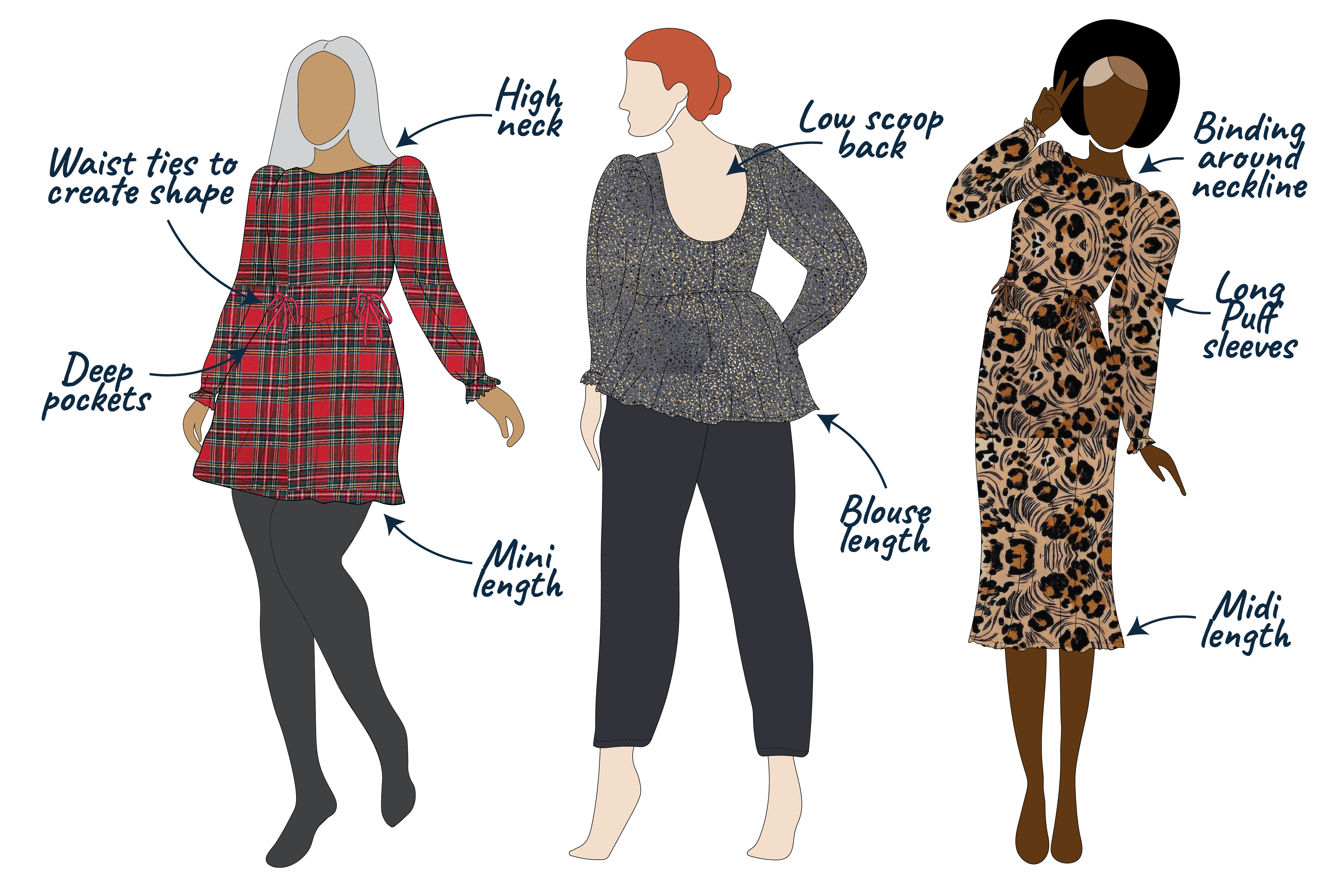 Because Willow works in so many fabrics, the long puff sleeve opens up more design options for different seasons: soft flannel for cosy winter warmth, that extra layer for cool spring days, or a drapey velvet for a special Christmas party dress. If romantic, whimsical handmade pieces are your thing, this add-on will make your Willow garments even more fabulous.